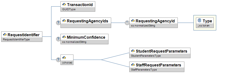 | RequestingAgencyIds/RequestingAgencyId | OR | Identification of the agency and/or location requesting the state Id resolution. Optional because the SIF zone infrastructure may provide adequate information for the state to ascertain the origin of the request. | xs:normalizedString | |