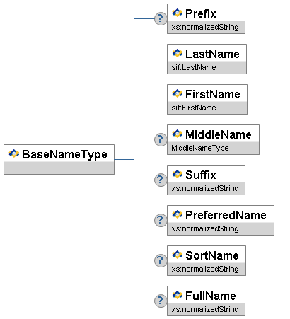 Figure A.3-1: BaseNameType BaseNameType Prefix LastName FirstName MiddleName Suffix PreferredName SortName FullName