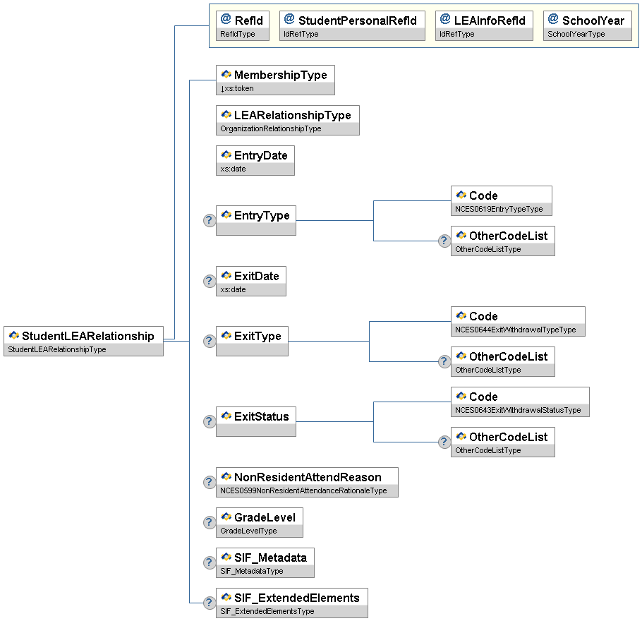 Figure 3.5.2-1: StudentLEARelationship| Element/@Attribute | Char | Description | Type | |