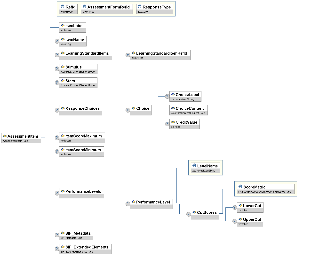 | AssessmentId | O | The state, local or publisher unique Id for the assessment. | xs:normalizedString | |