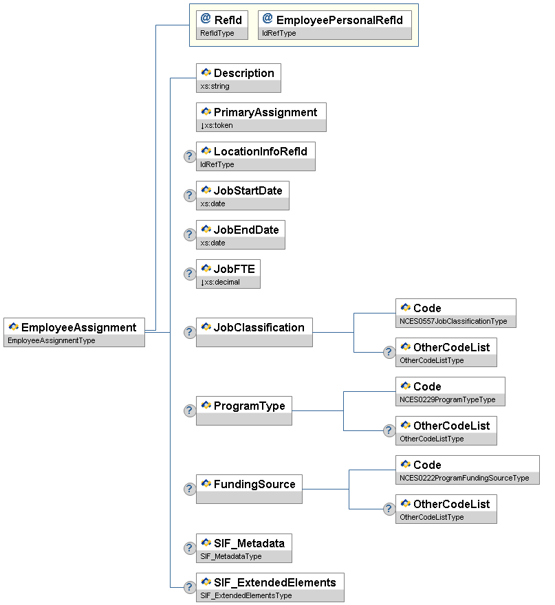 | JobClassification/Code | M | The specific group of duties or responsibilities of position. | NCES0557JobClassificationType | |||||||