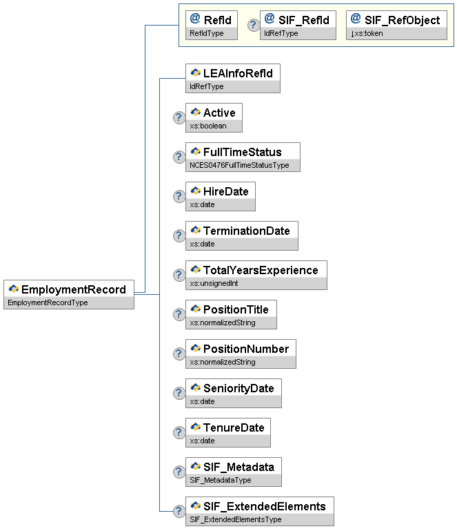 Figure 3.10.8-1: EmploymentRecord| Element/@Attribute | Char | Description | Type | |